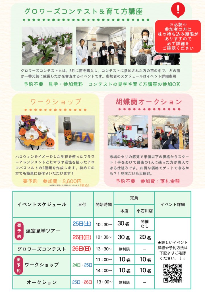 ※10月26日にお引き取りの場合は、コンテスト終了後の14:00以降にお願いいたします