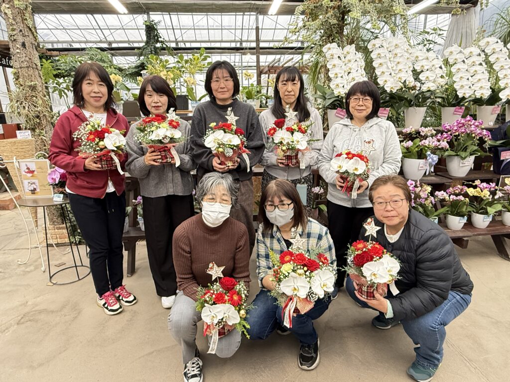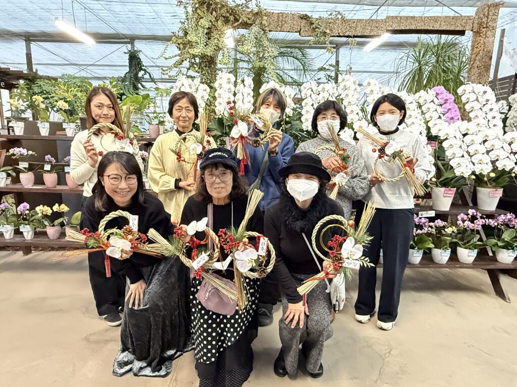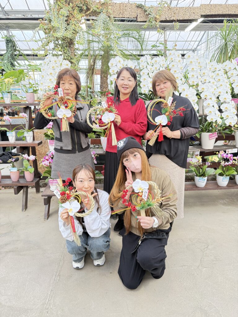 こちらは胡蝶蘭の造花などをつかってお正月飾りを作成しました。