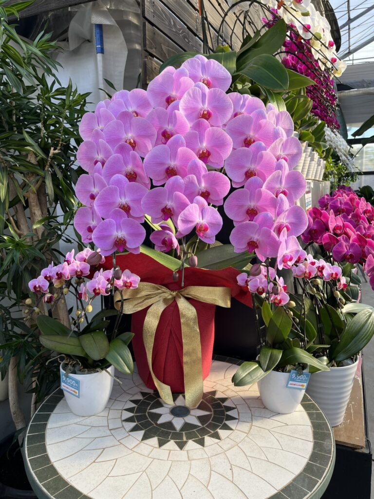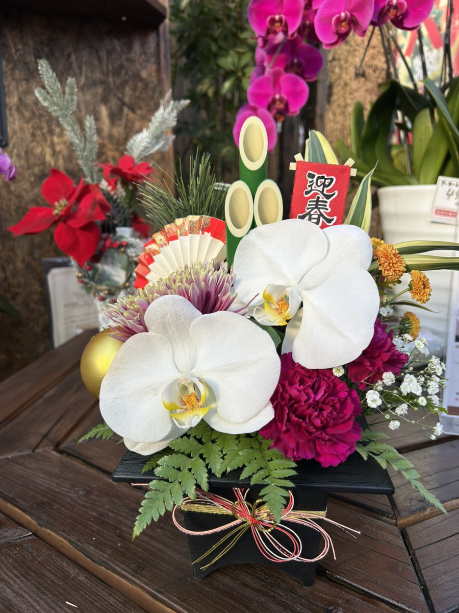 春節に向けた特別ラッピングが登場! 春先取りの中輪胡蝶蘭『リトルリップ』も人気です! 皆様のご来店心...