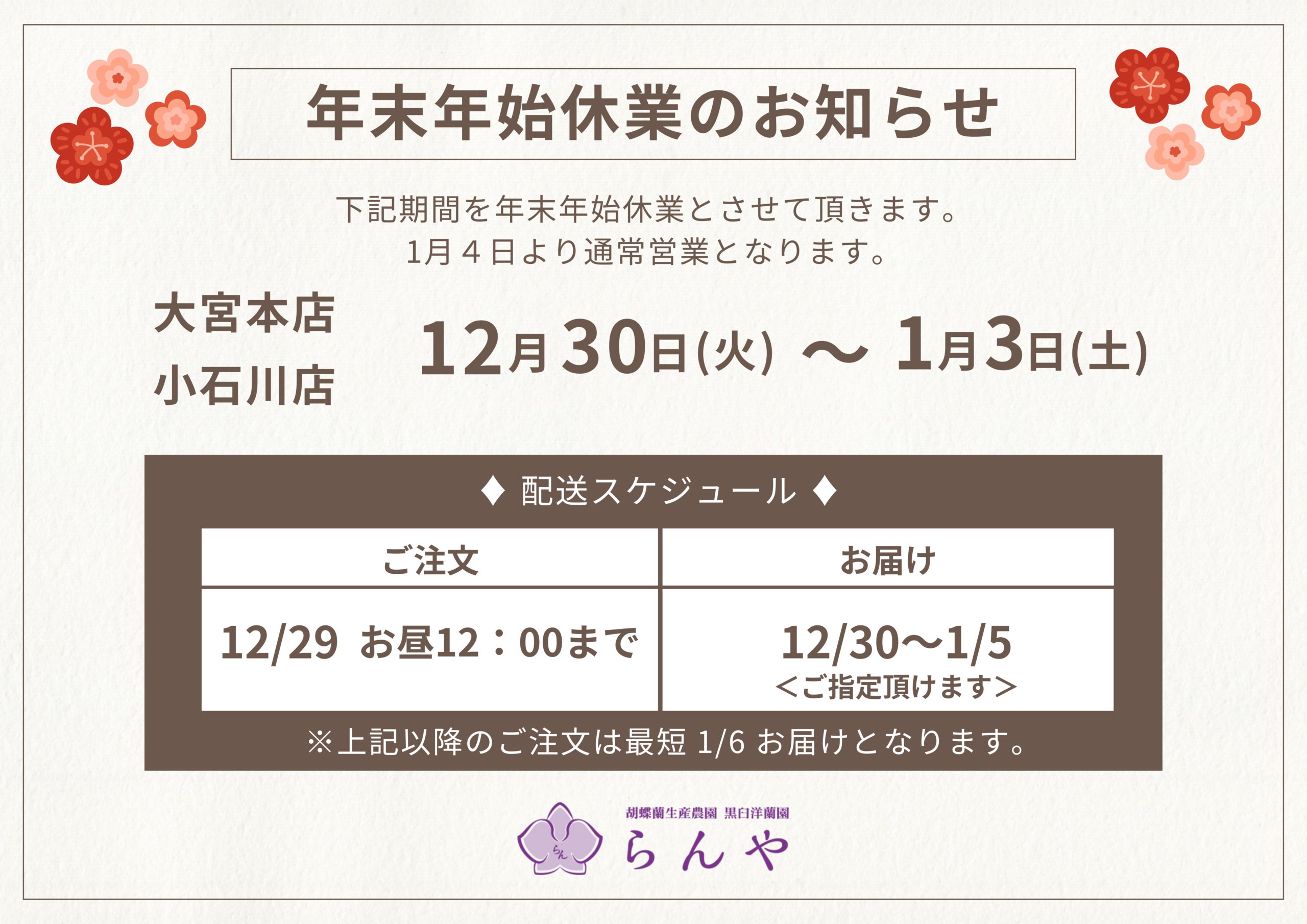 今年も残すところわずかとなりました。 本年もらんやをご愛顧いただきまして、誠にありがとうございます。...
